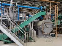 層蝶式汽提塔是國內(nèi)浸出油廠使用較多的一種汽提設備。若按照水蒸氣對混合油的汽提次數(shù),層蝶式汽提塔可分為單段式和雙段式兩種。雙段蝶式汽提塔,它主要有頂蓋、上塔體、中塔體、下塔體以及底蓋所組成。在上塔體和下塔體內(nèi)各有6-9組碟盤。每組碟盤都由滯流盤、錐形分配碟和環(huán)形分配碟組成。上、下塔體的外殼均裝有夾套,在夾套中通入343-441kPa的加熱蒸汽對塔內(nèi)的混合油進行間接加熱。中塔體和底盤內(nèi)各有一組直接蒸汽噴入裝置。這組裝置由集油盤、導流管、中心管、直接蒸汽噴管組成。來自第二蒸發(fā)器的混合油,進入層蝶式汽提塔的進油管之后,自上而下逐次流經(jīng)每一組碟盤。到達中塔體的集油盤底的阻攔,被汽提出的溶劑蒸汽和水蒸氣繞過集油盤向上移動,而油被阻留落下。之后,混合油又沿著下塔體內(nèi)的各組碟盤逐次流下,到達底蓋內(nèi),在直接蒸汽噴入裝置中又一次被汽提,汽提出的溶劑蒸汽和水蒸氣自下而上逐級通過每一組碟盤的空隙,與碟盤表面流下的液膜狀混合油充分接觸,使混合油得到進一步汽提。到達頂部的混合蒸汽通過出氣管進入汽提冷凝器。經(jīng)汽提后的浸出毛油從底部的出油管通過液封裝置排出。層蝶式汽提塔結(jié)構(gòu)較為簡單,操作方便,工藝效果好。但是必須注意的:每一組碟盤的制造質(zhì)量和是否水平安裝,將影響混合油液膜的形成與氣液相接觸的面積;直接蒸汽含水,會造成毛油中磷脂的析出;直接蒸汽壓力過高或者用量過大,會形成液泛現(xiàn)象;混合油中含雜太多,則使汽提塔碟盤表面的結(jié)垢現(xiàn)象嚴重,毛油質(zhì)量降低;若采用多段式,應使上層直接蒸汽壓力低于下層。直接蒸汽好采用低壓過熱蒸汽。層蝶式汽提塔在檢修時碟盤的清理比較麻煩。